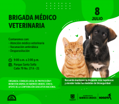 La Alcaldía Local de Barrios Unidos invita a la comunidad a la Brigada Veterinaria que tendremos el próximo viernes 8 de julio, de 9:00 a.m. a 2:00 p.m. en el parque Santa Sofía (Calle 79 # 27a - 21) Tendremos servicios de: Desparasitación, vacunación antirrábica y atención médico veterinaria ¡Te esperamos! Recuerda cumplir con todos los protocolos de bioseguridad Organiza Consejo Local de Protección y Bienestar Animal de Barrios Unidos con el apoyo de Corporación Educativa Nacional. #BarriosUnidosSomosEjemplo